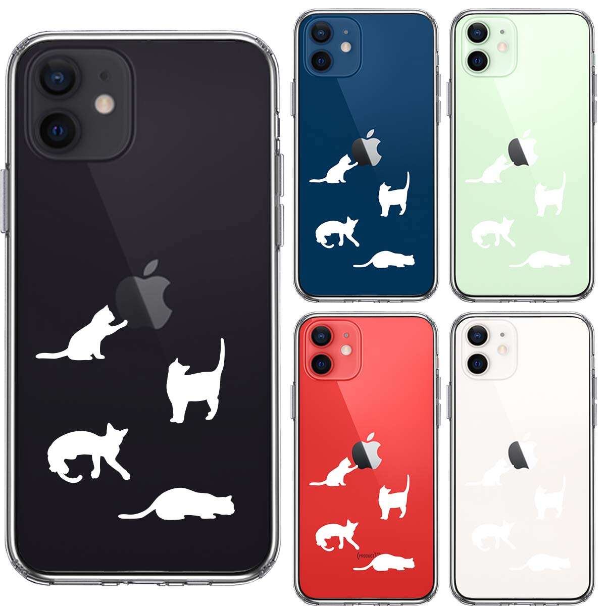 iPhone12mini 側面ソフト 背面ハード ハイブリッド クリア ケース 陽だまりのにゃんこ ねこ 猫 ホワイト