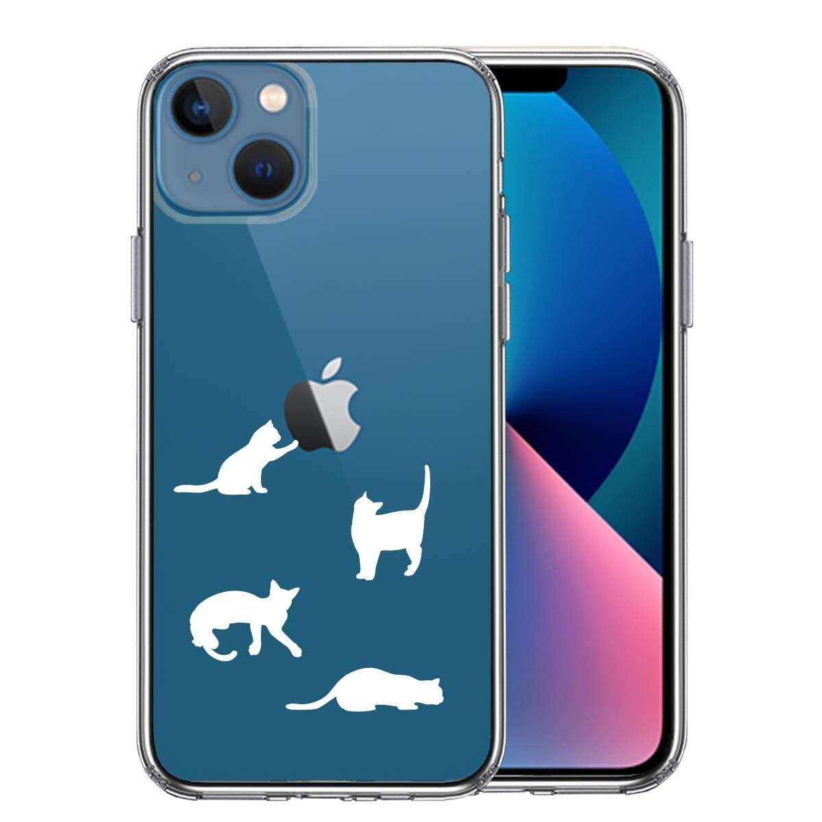 iPhone13 側面ソフト 背面ハード ハイブリッド クリア ケース 陽だまりのにゃんこ ねこ 猫 ホワイト