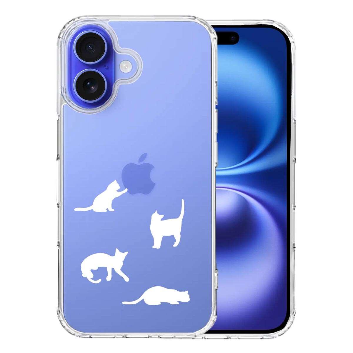 iPhone16 側面ソフト 背面ハード ハイブリッド クリア ケース 陽だまりのにゃんこ ねこ 猫 ホワイト