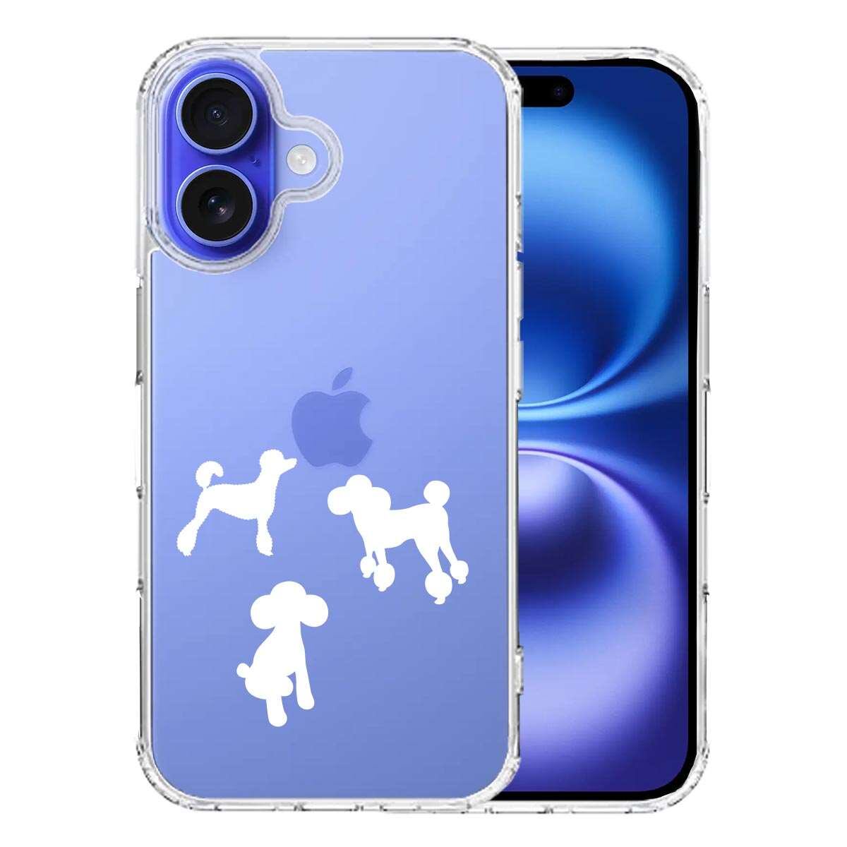 iPhone16 側面ソフト 背面ハード ハイブリッド クリア ケース 陽だまり トイプードル もふもふ わんこ 白