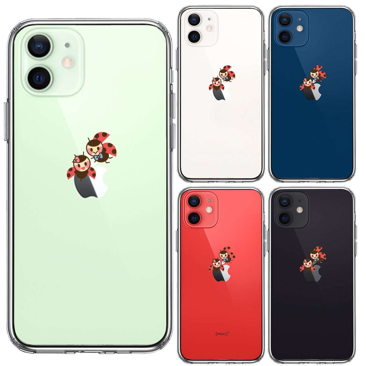 iPhone12 側面ソフト 背面ハード ハイブリッド クリア ケース てんとう虫 カップル