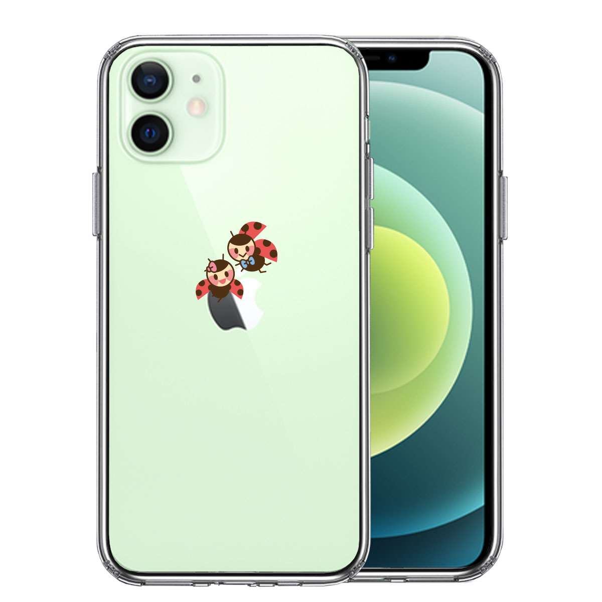 iPhone12mini 側面ソフト 背面ハード ハイブリッド クリア ケース てんとう虫 カップル