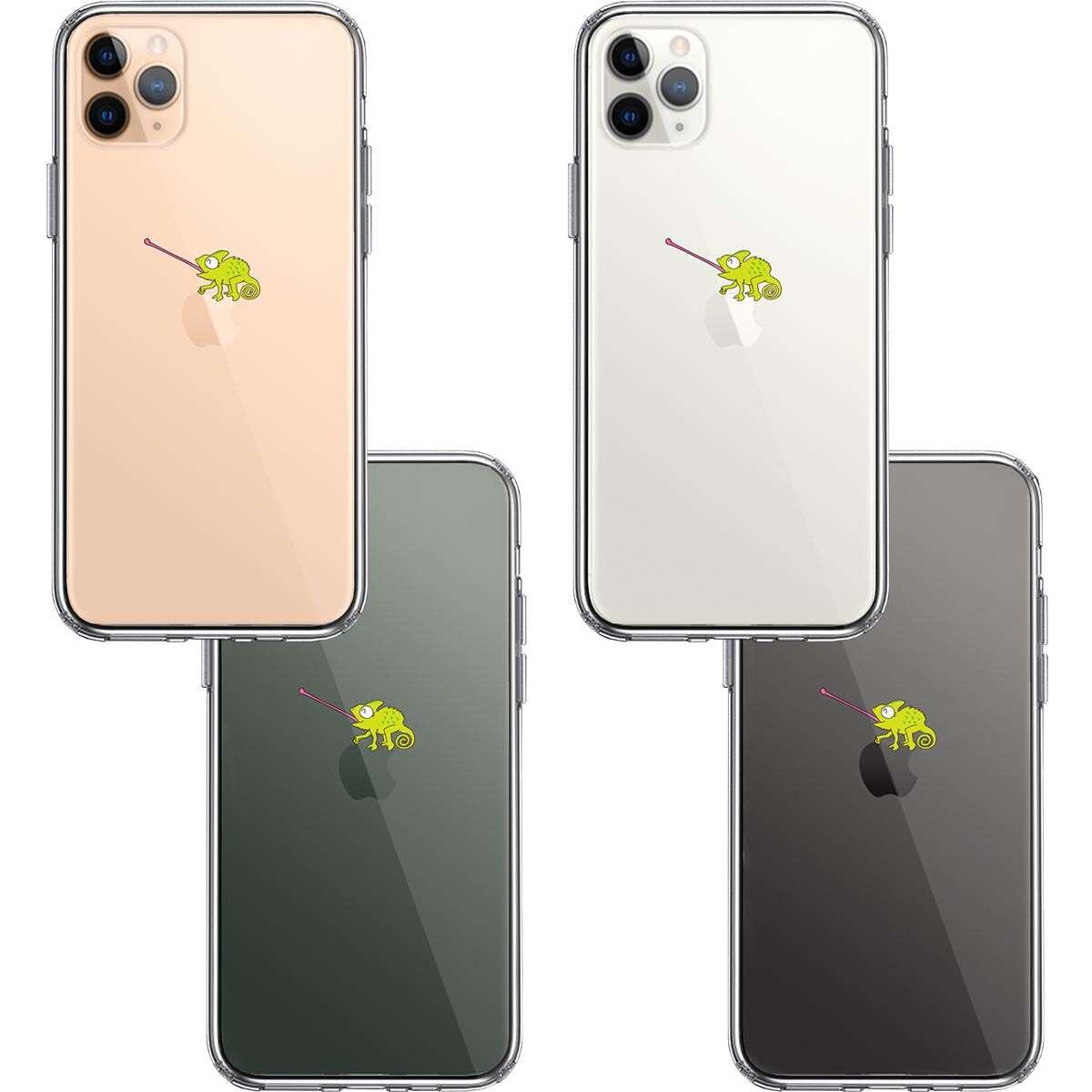 iPhone11pro 側面ソフト 背面ハード ハイブリッド クリア ケース カメレオン 爬虫類