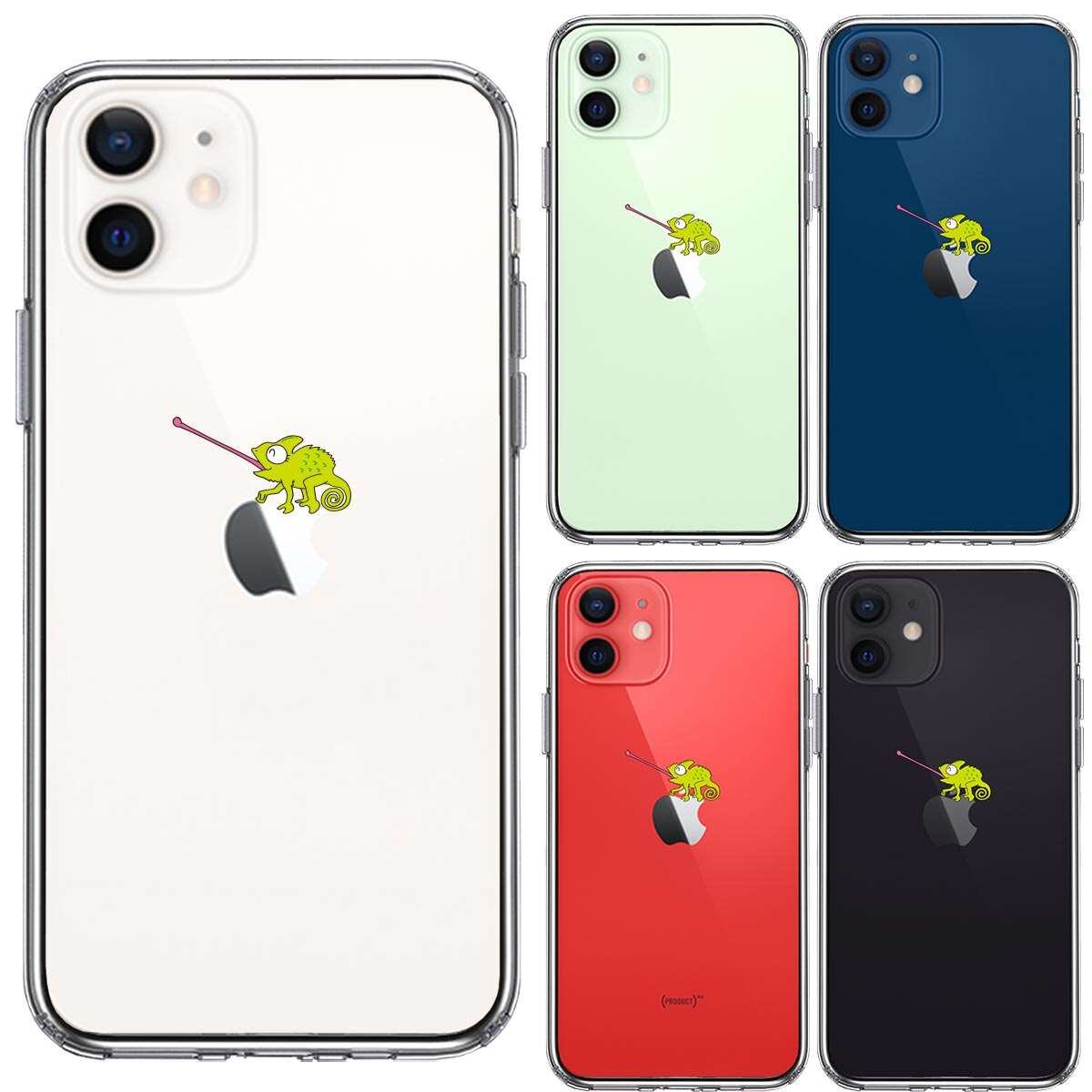 iPhone12 側面ソフト 背面ハード ハイブリッド クリア ケース カメレオン 爬虫類