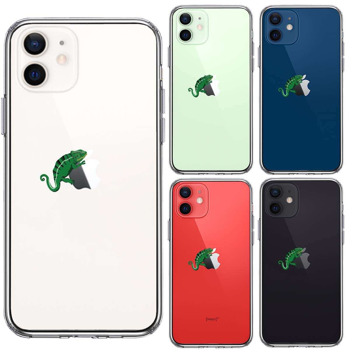 iPhone12mini 側面ソフト 背面ハード ハイブリッド クリア ケース カメレオン 2 爬虫類