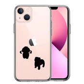 iPhone13mini 側面ソフト 背面ハード ハイブリッド クリア ケース 子犬シルエット パピー ブラック