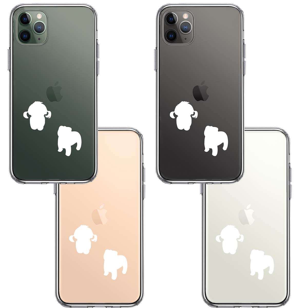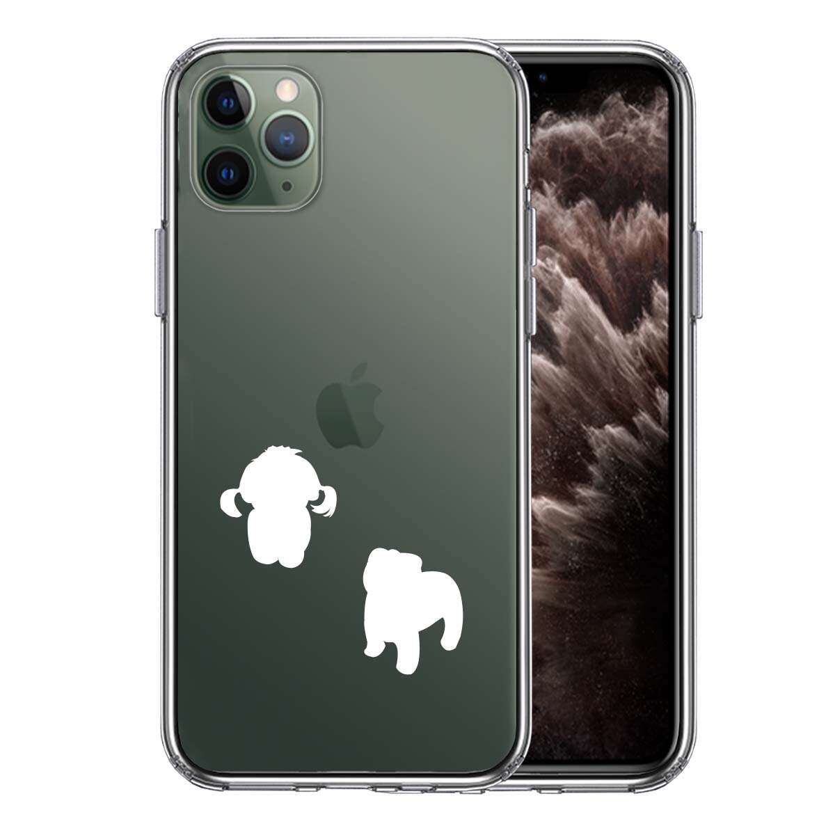 iPhone11pro 側面ソフト 背面ハード ハイブリッド クリア ケース 子犬シルエット パピー ホワイト