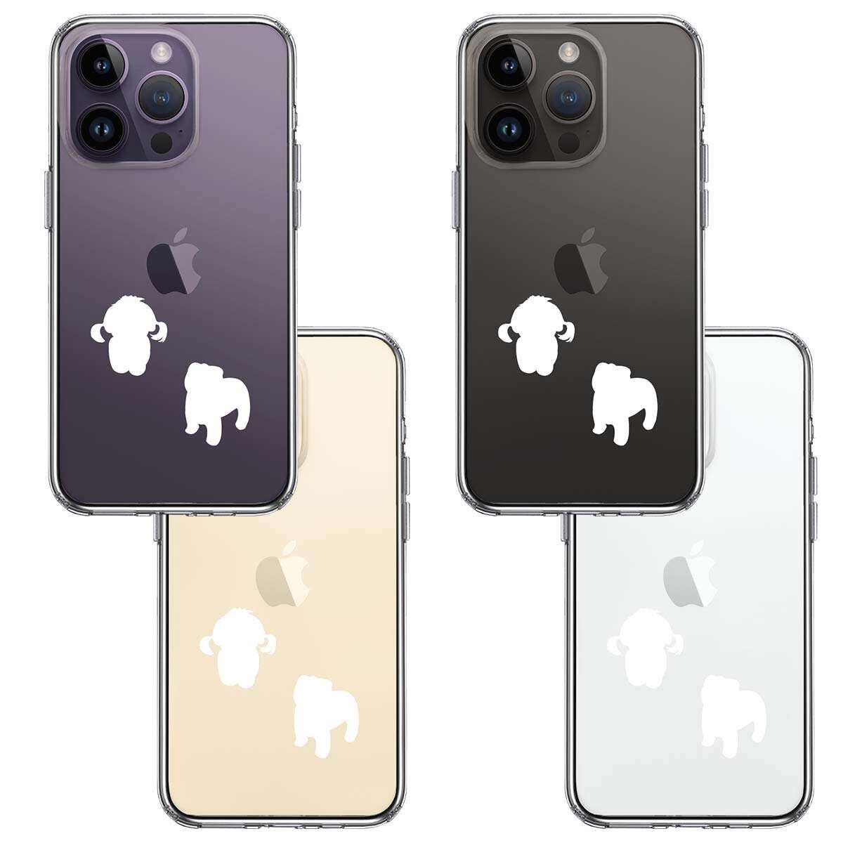 iPhone14 Pro 側面ソフト 背面ハード ハイブリッド クリア ケース 子犬シルエット パピー ホワイト
