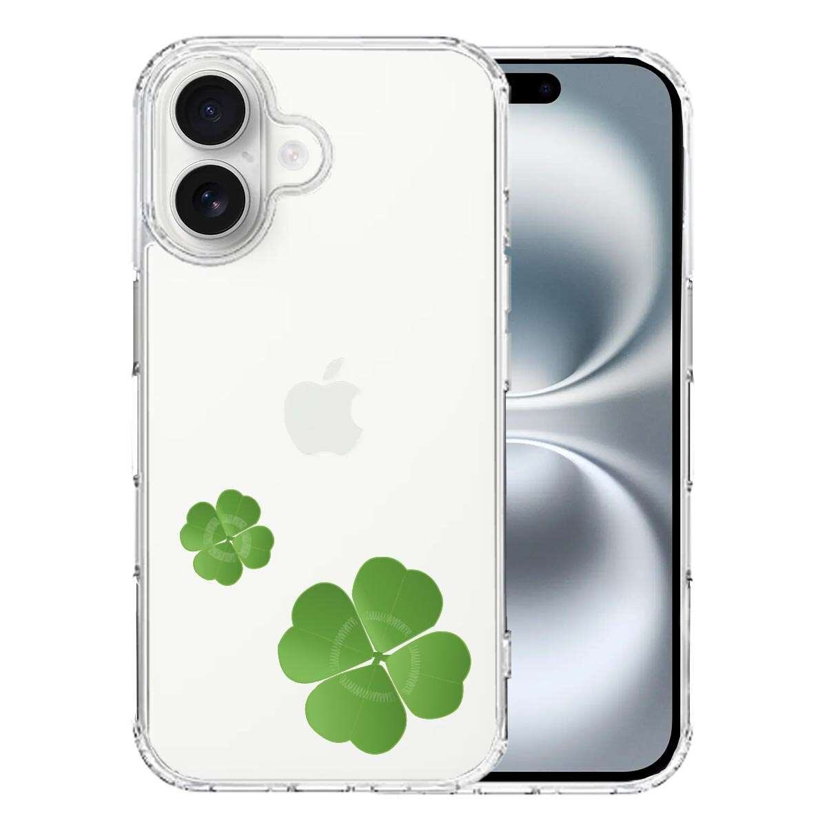 iPhone16 側面ソフト 背面ハード ハイブリッド クリア ケース 幸運 四葉のクローバー