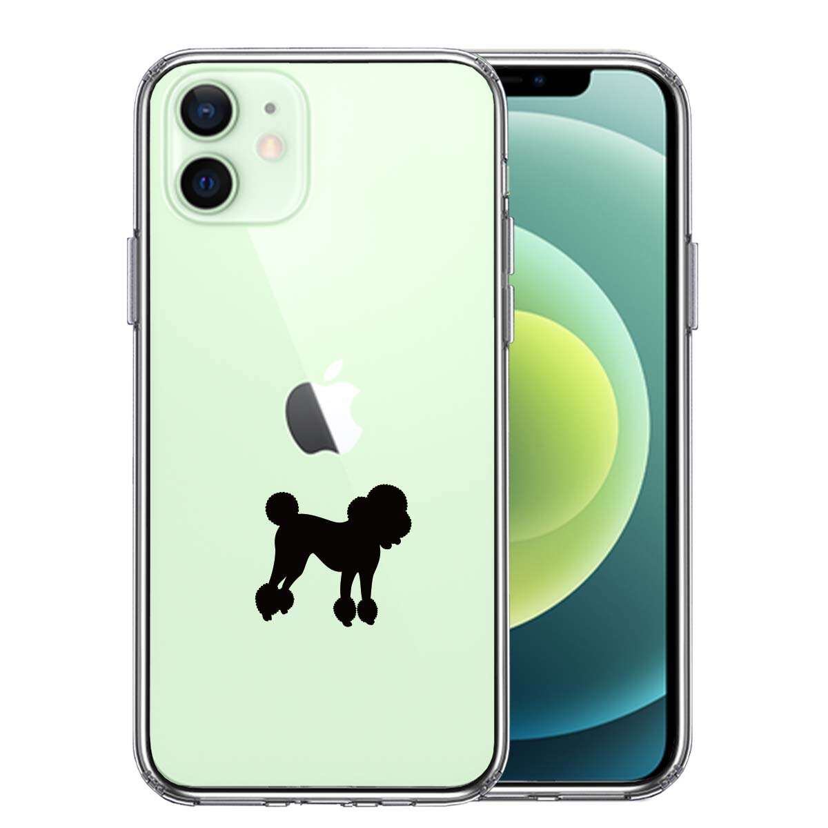 iPhone12mini 側面ソフト 背面ハード ハイブリッド クリア ケース トイプードル 黒