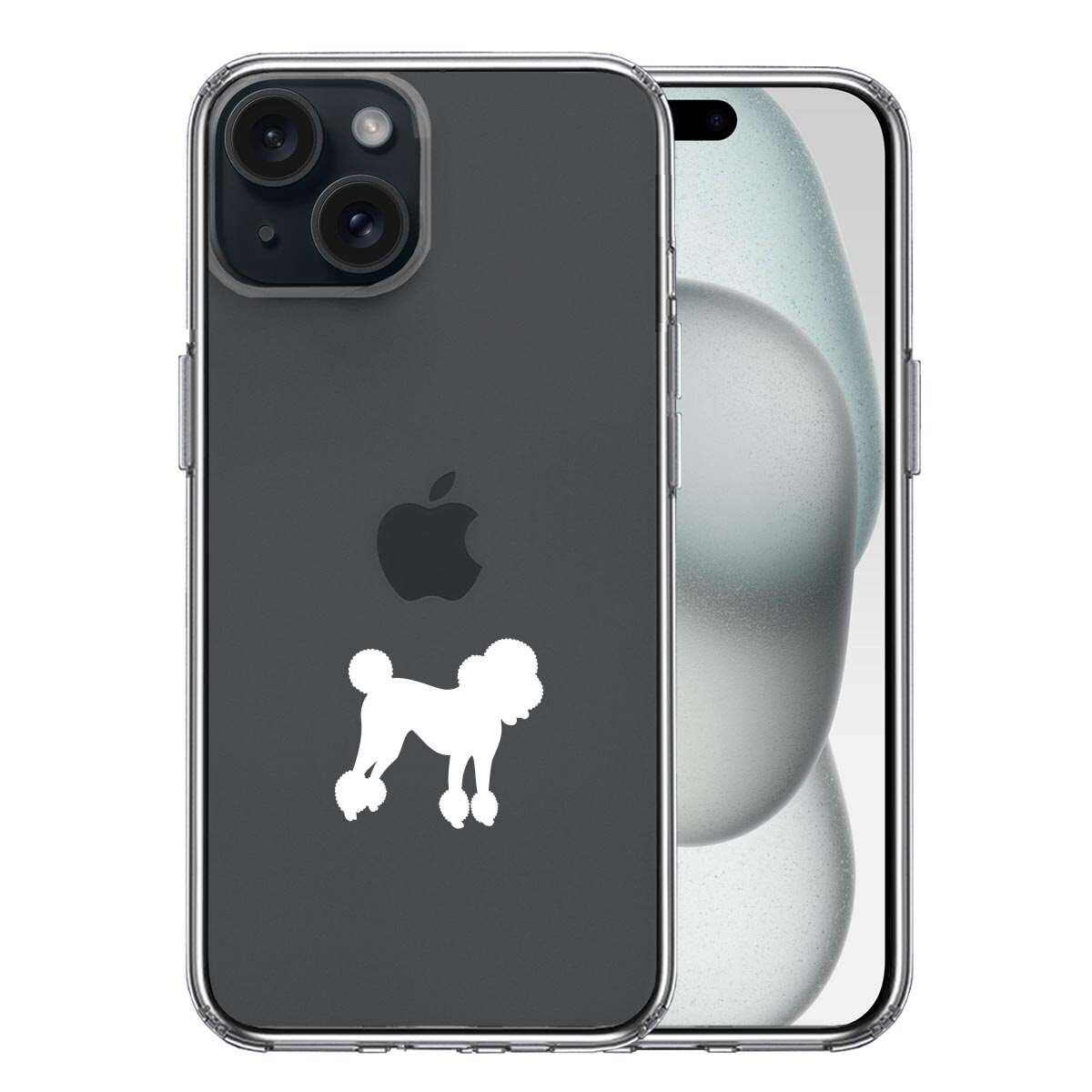 iPhone15 側面ソフト 背面ハード ハイブリッド クリア ケース トイプードル ホワイト