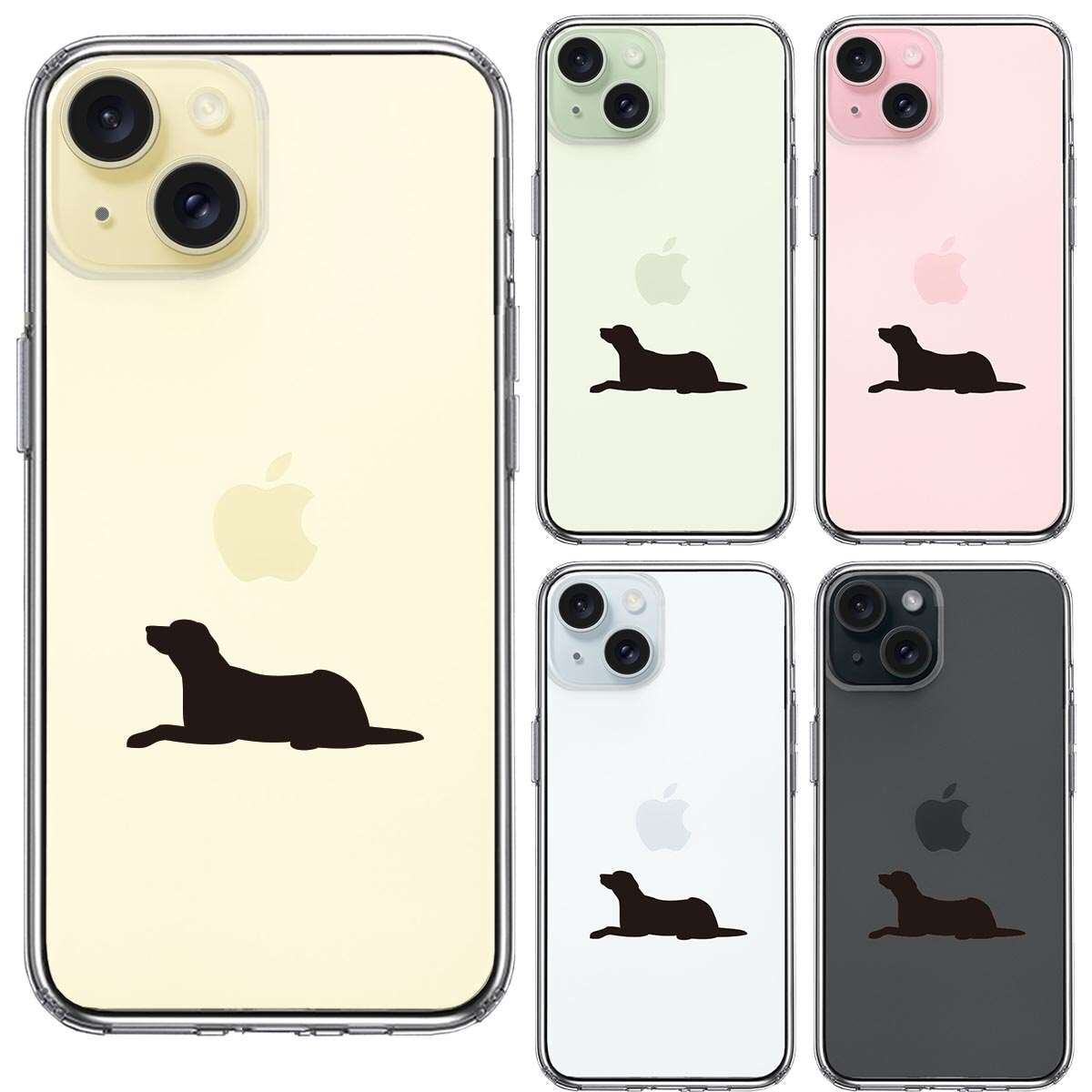 iPhone15 側面ソフト 背面ハード ハイブリッド クリア ケース 犬 シルエット ラブラドールレトリバー
