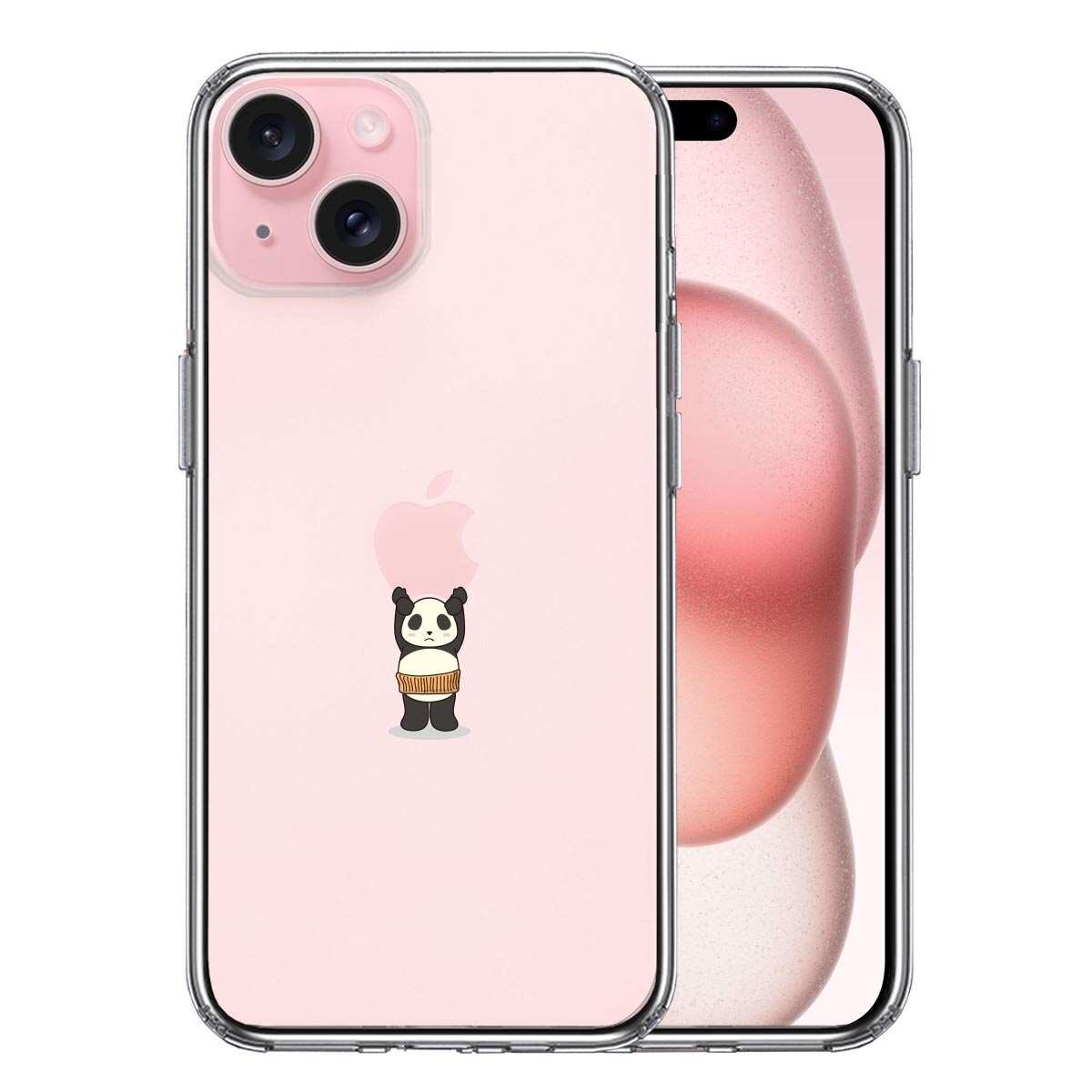 iPhone15 側面ソフト 背面ハード ハイブリッド クリア ケース パンダ アップル 重量挙げ 腹巻