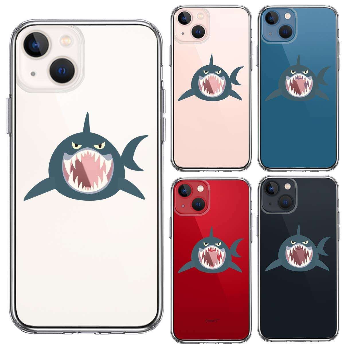 iPhone13 側面ソフト 背面ハード ハイブリッド クリア ケース サメ リンゴ飲み込む
