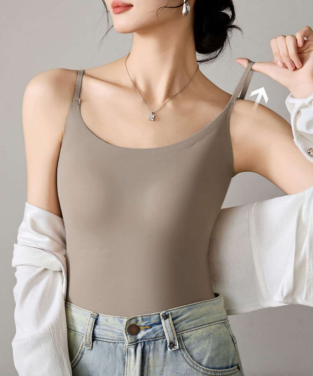 Uネックキャミソール シームレスキャミレディース ノンワイヤー ベーシック肌着 涼やか 薄手 ブラ一体型インナーウェア夏