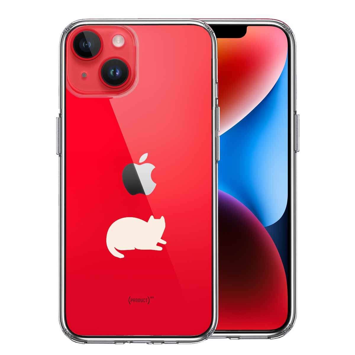 iPhone 14 Plus 側面ソフト 背面ハード ハイブリッド クリア ケース にゃんこ 伏せ ホワイト