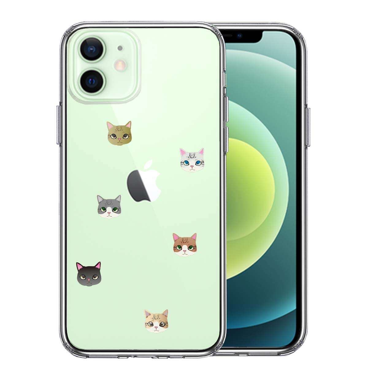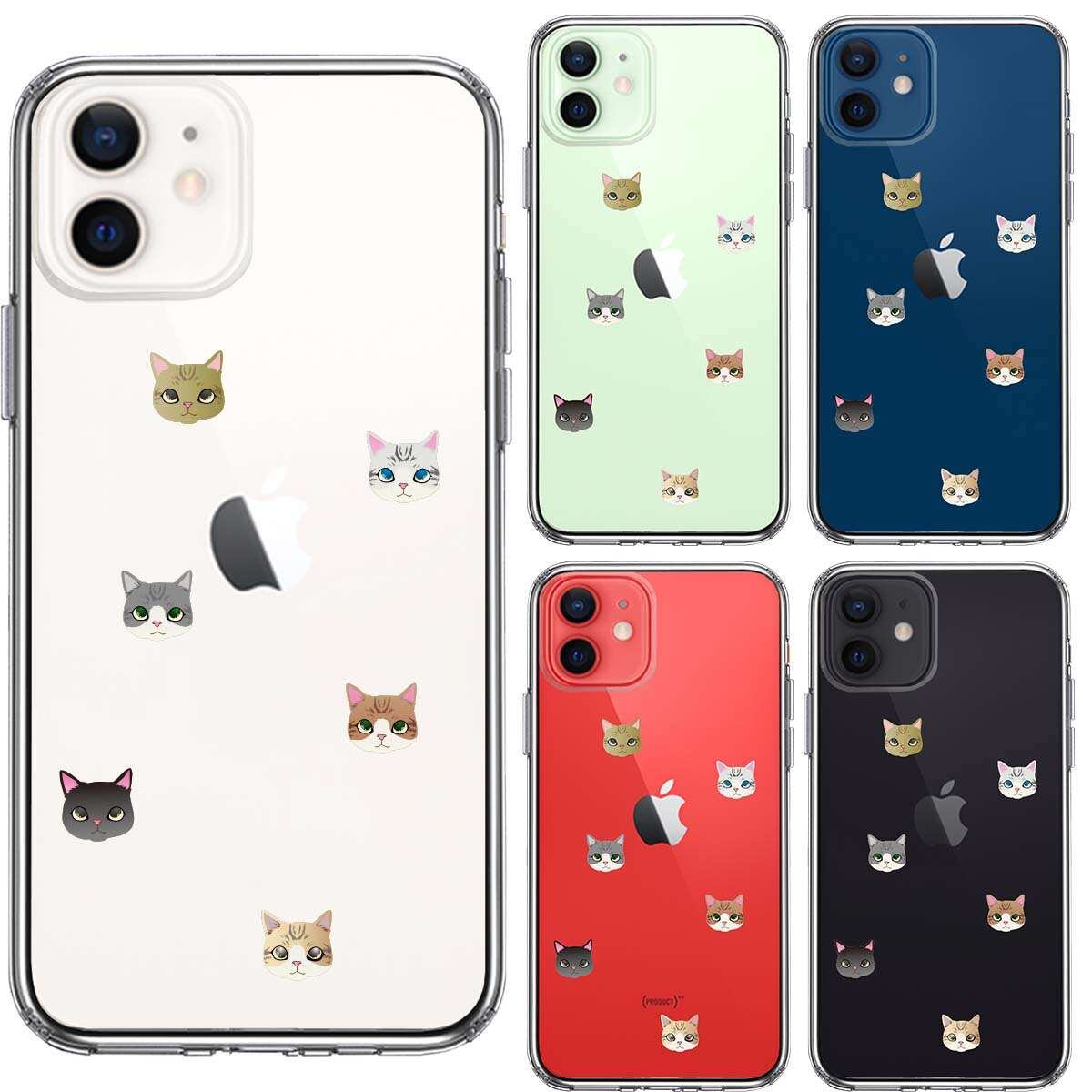 iPhone12 側面ソフト 背面ハード ハイブリッド クリア ケース にゃんこ 猫だらけ