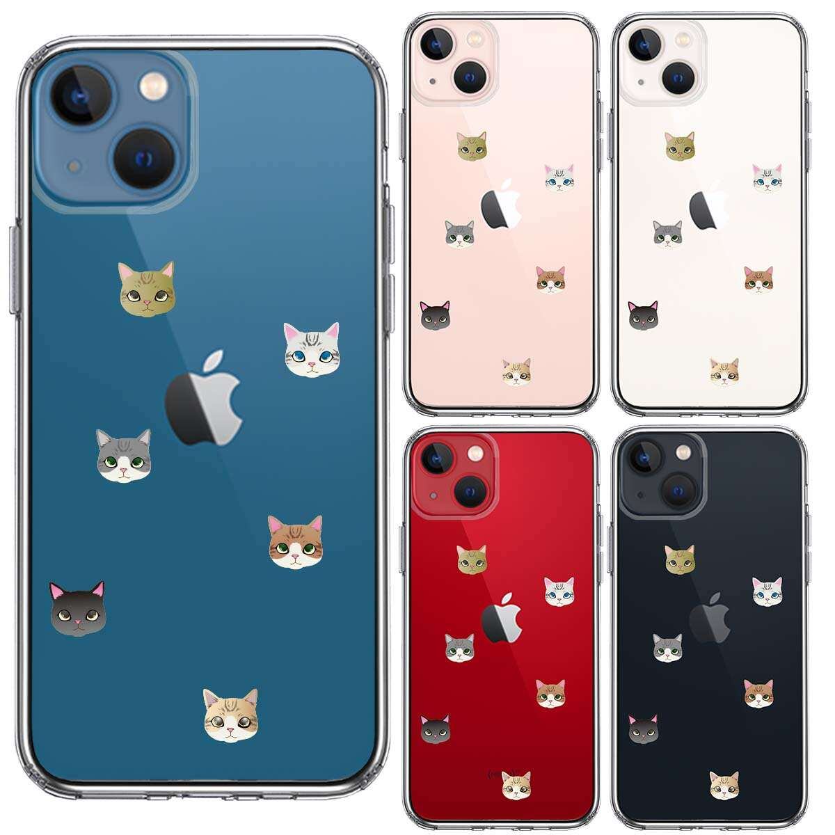 iPhone13mini 側面ソフト 背面ハード ハイブリッド クリア ケース にゃんこ 猫だらけ