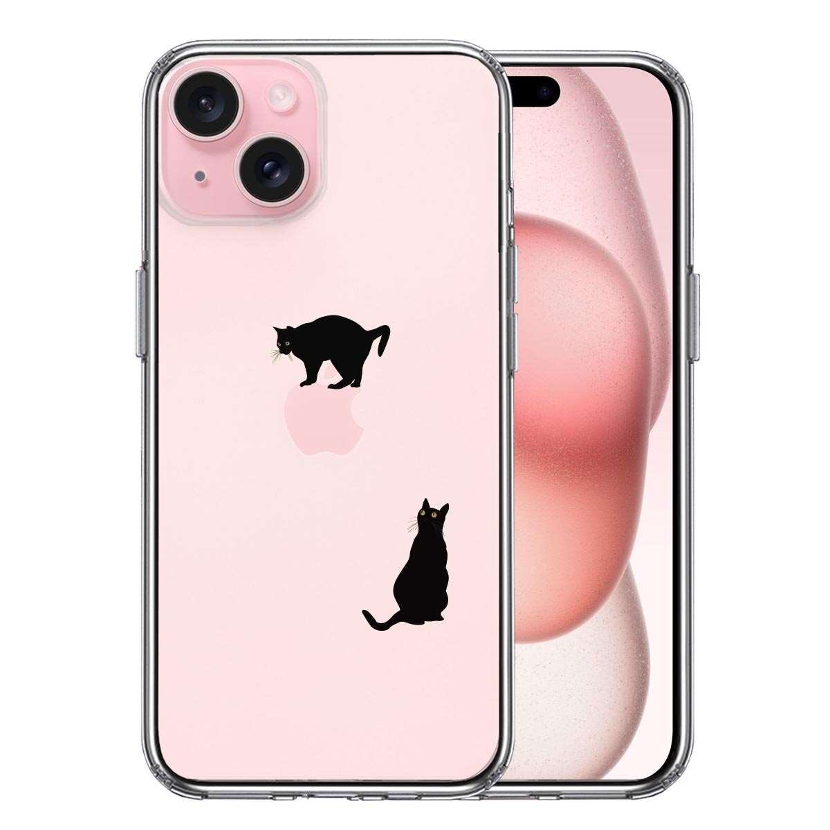 iPhone15 側面ソフト 背面ハード ハイブリッド クリア ケース 猫 りんご制覇 いいな