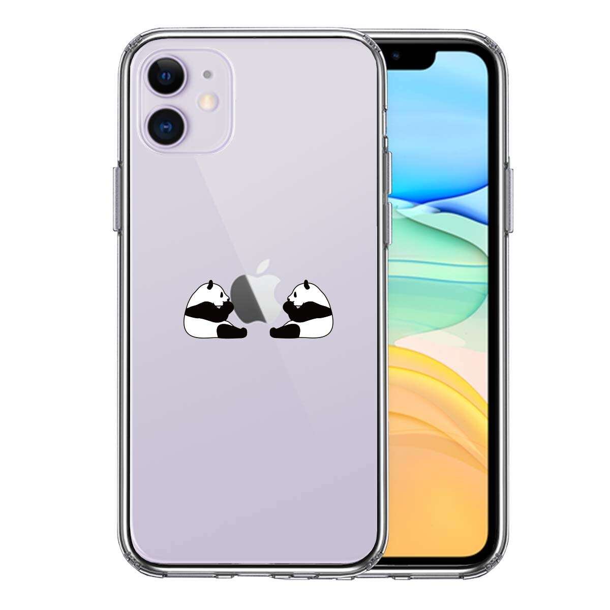 iPhone11 側面ソフト 背面ハード ハイブリッド クリア ケース 双子 パンダ りんご モグモグ