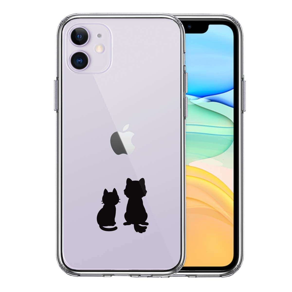 iPhone11 側面ソフト 背面ハード ハイブリッド クリア ケース わんこ にゃんこ ほっこり お月見