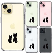 iPhone 15 Plus 側面ソフト 背面ハード ハイブリッド クリア ケース わんこ にゃんこ ほっこり お月見