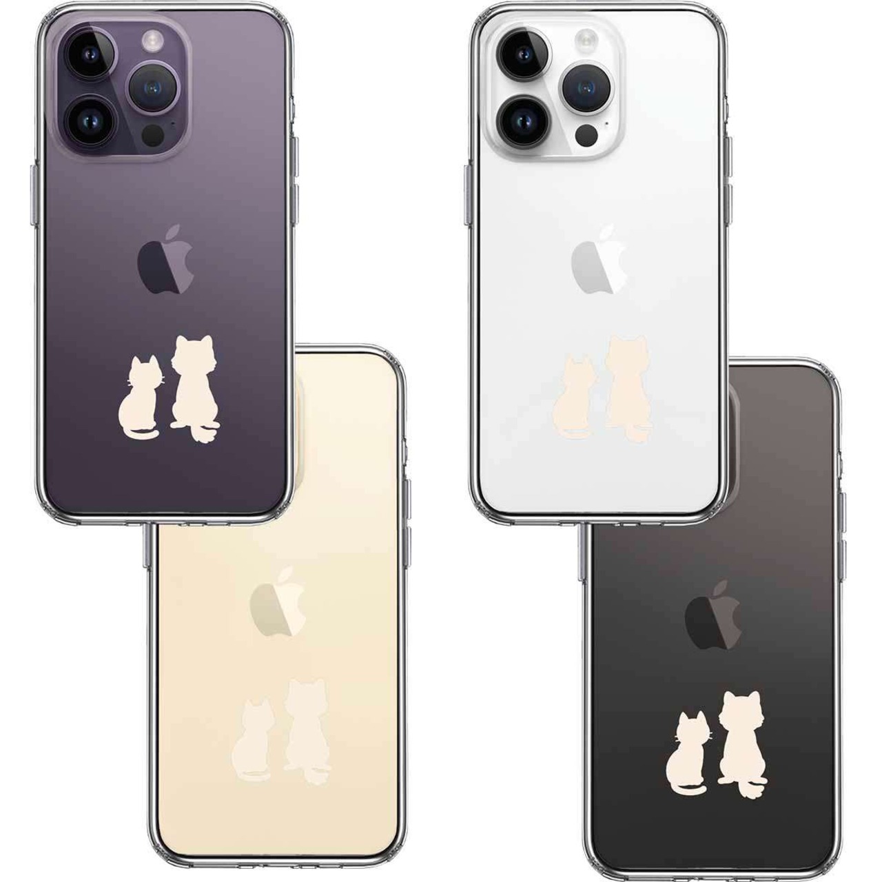 iPhone14 Pro 側面ソフト 背面ハード ハイブリッド クリア ケース わんこ にゃんこ ほっこり お月見 白