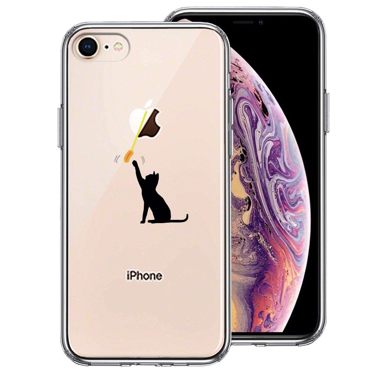iPhone8 側面ソフト 背面ハード ハイブリッド クリア ケース にゃんこ 猫じゃらし