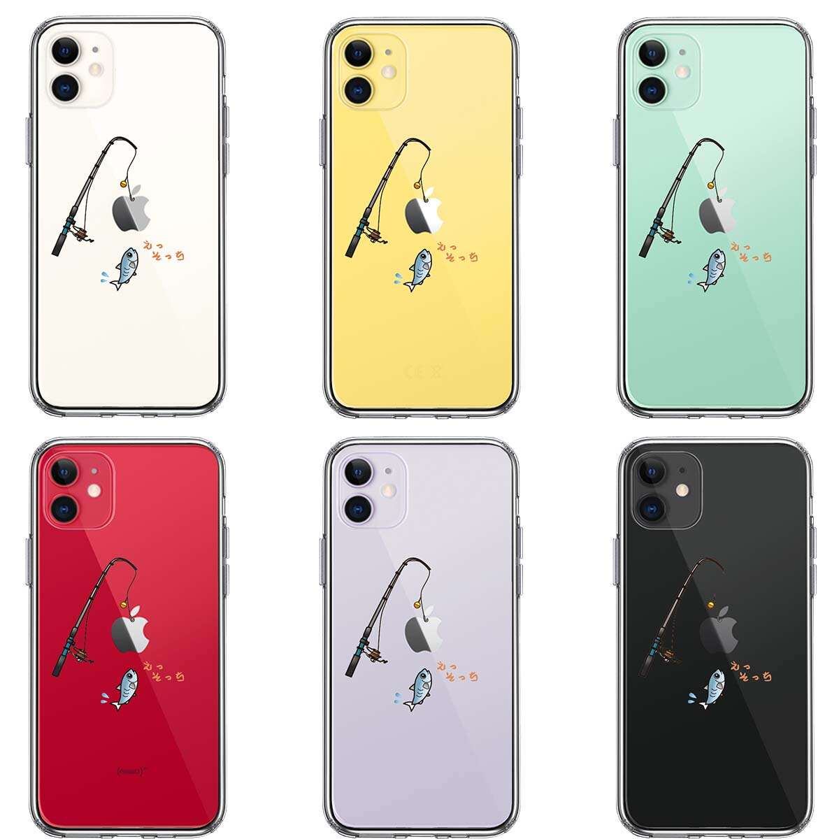 iPhone11 側面ソフト 背面ハード ハイブリッド クリア ケース 魚釣り 釣り竿