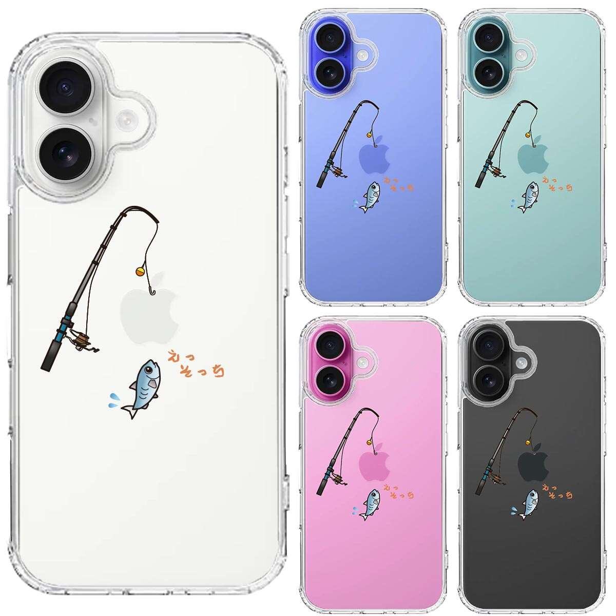 iPhone16 側面ソフト 背面ハード ハイブリッド クリア ケース 魚釣り 釣り竿