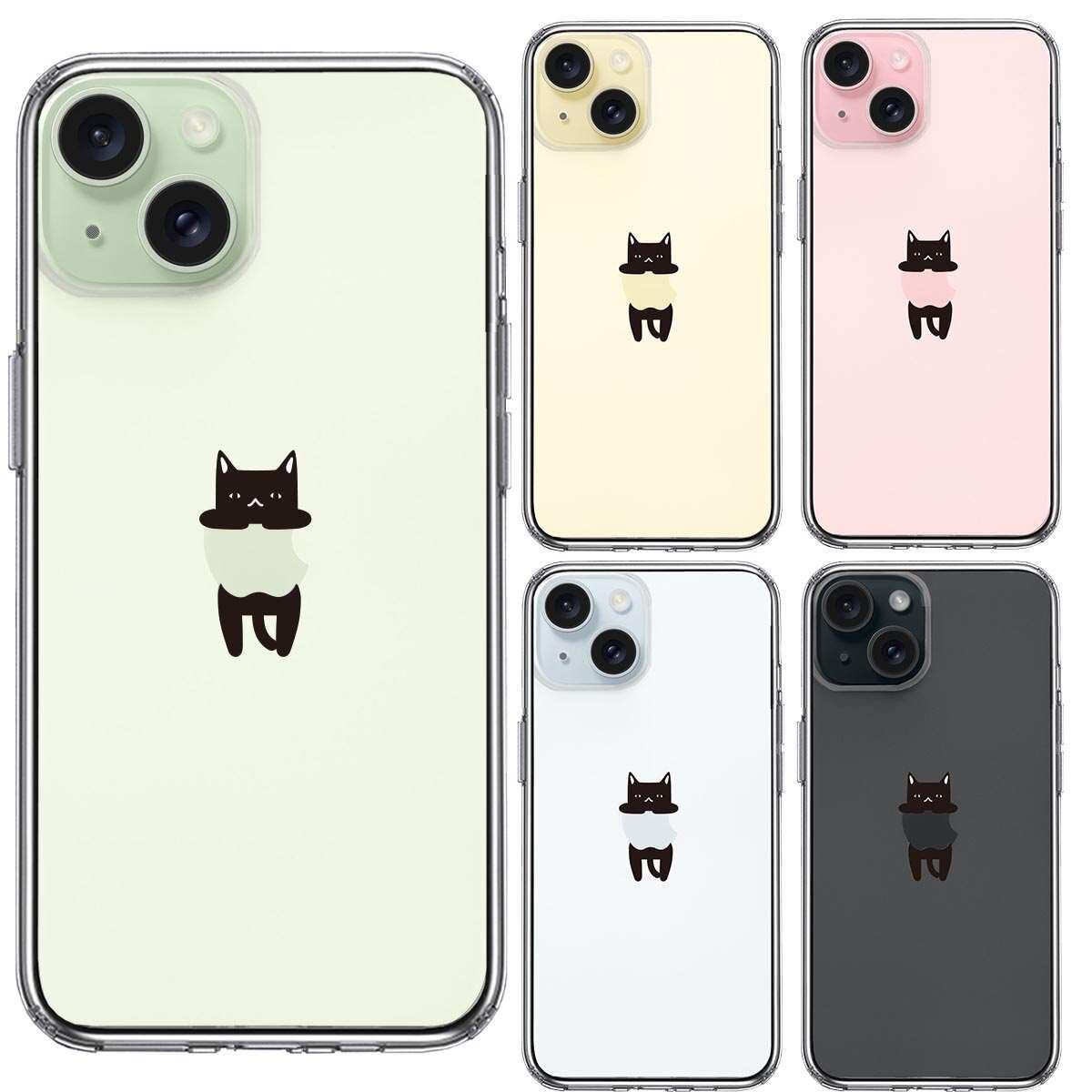 iPhone 15 Plus 側面ソフト 背面ハード ハイブリッド クリア ケース ぶらさがり にゃんこ 黒猫