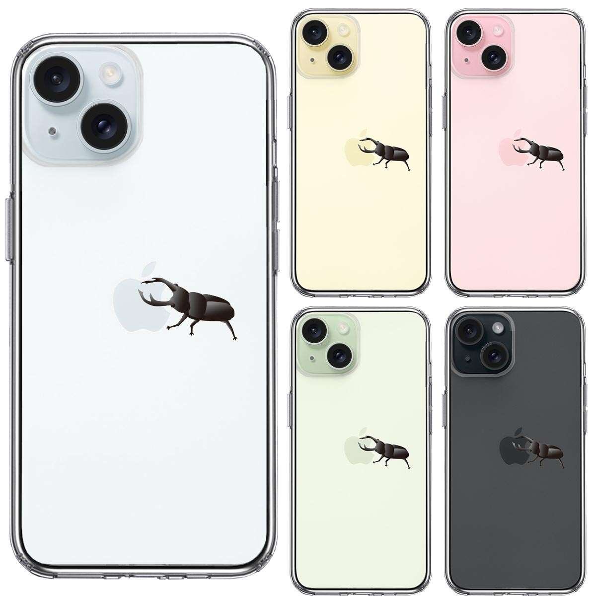 iPhone15 側面ソフト 背面ハード ハイブリッド クリア ケース クワガタムシ 2 昆虫