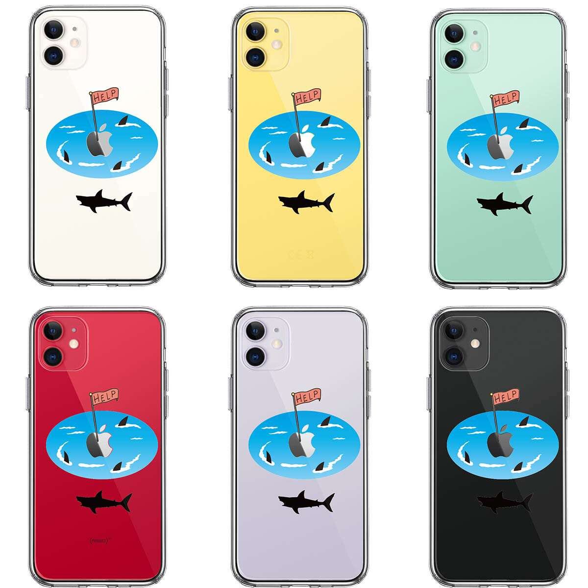 iPhone11 側面ソフト 背面ハード ハイブリッド クリア ケース サメ ぐるぐる