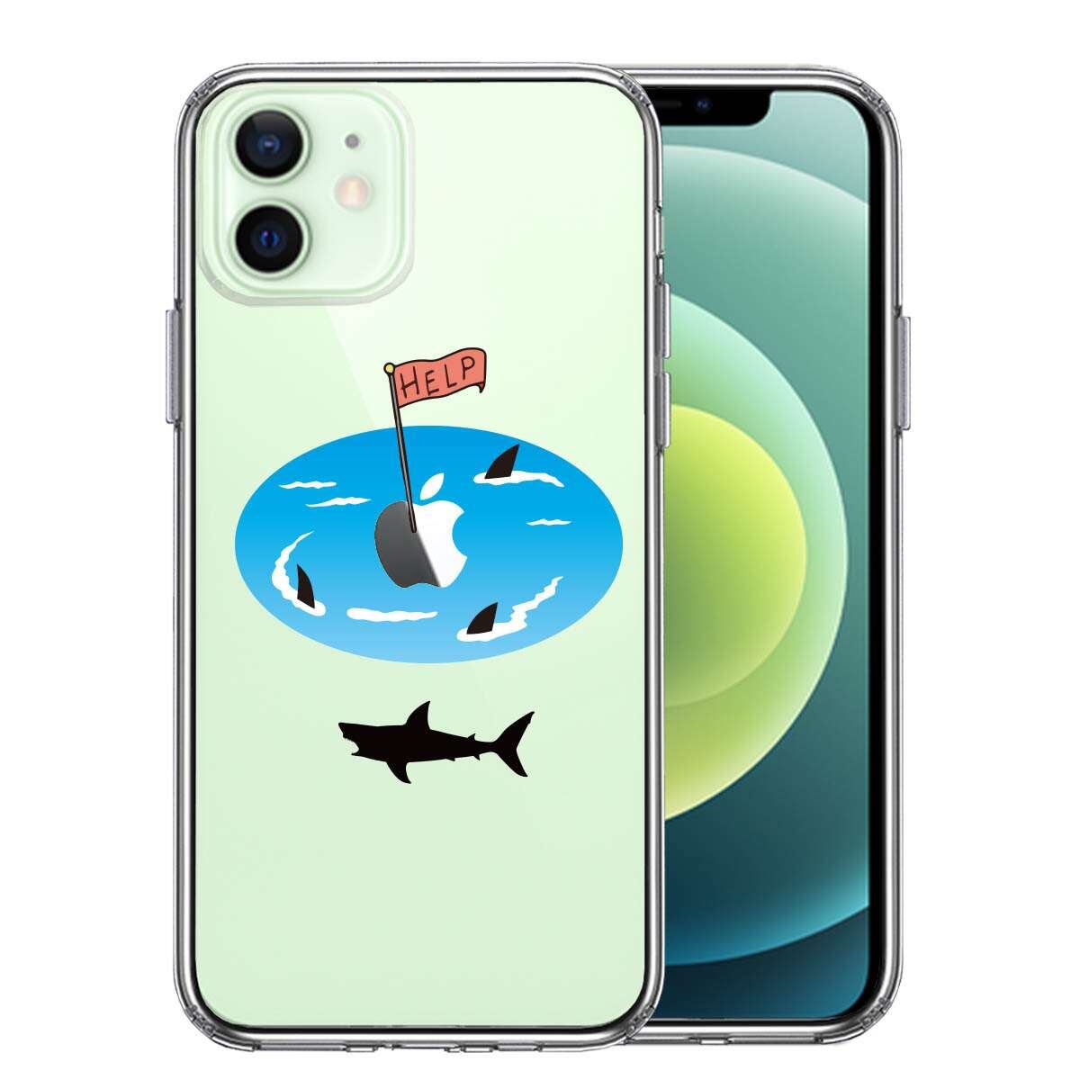 iPhone12mini 側面ソフト 背面ハード ハイブリッド クリア ケース サメ ぐるぐる