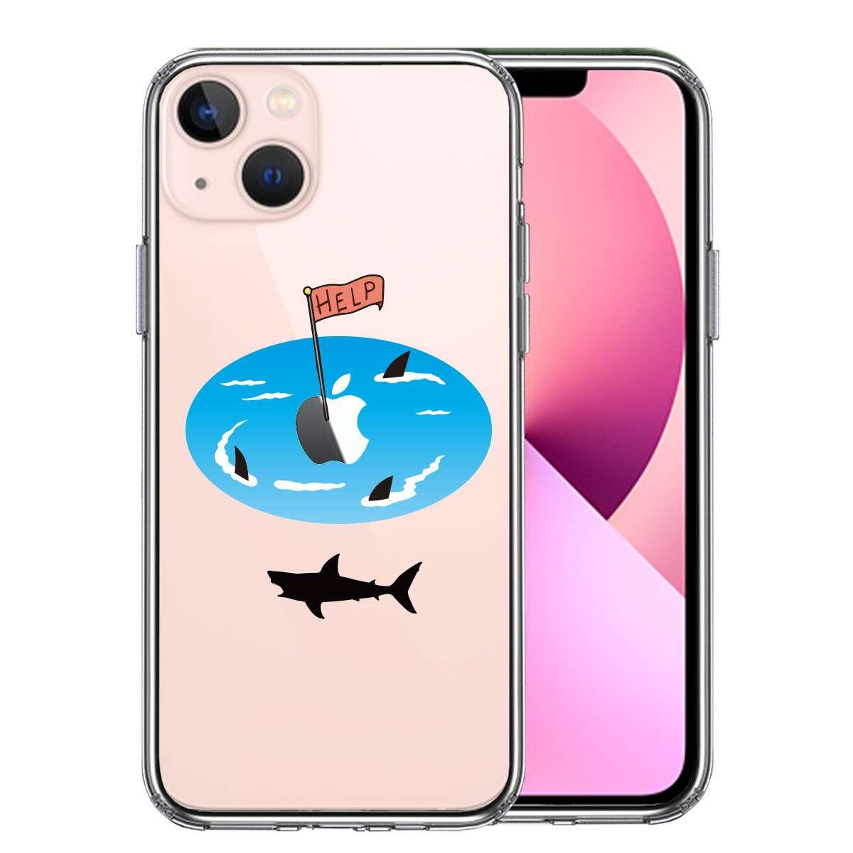 iPhone13mini 側面ソフト 背面ハード ハイブリッド クリア ケース サメ ぐるぐる