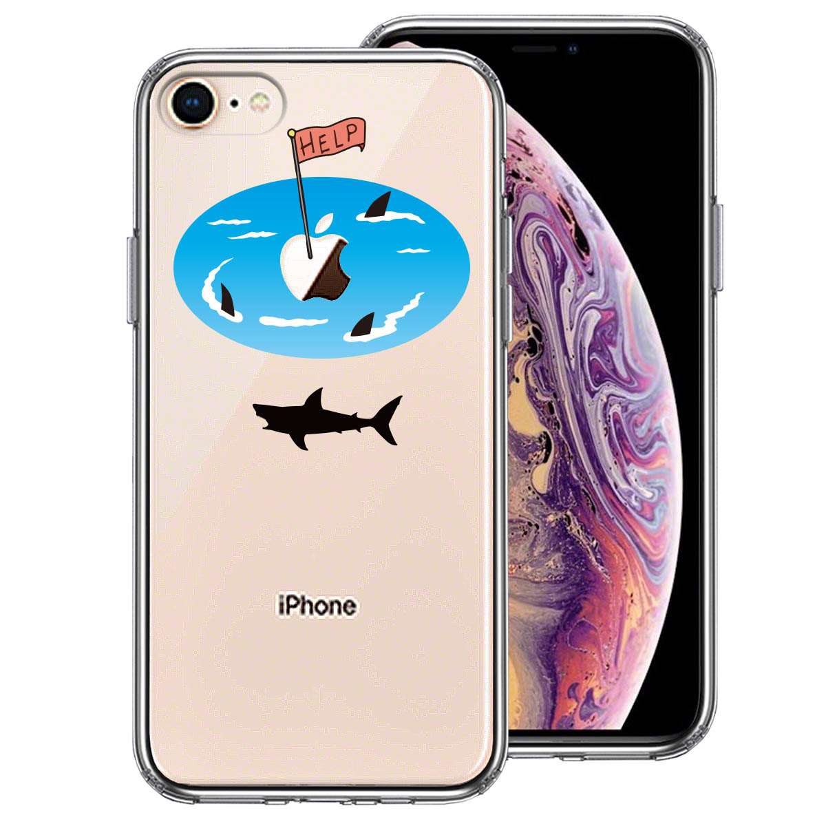 iPhone8 側面ソフト 背面ハード ハイブリッド クリア ケース サメ ぐるぐる