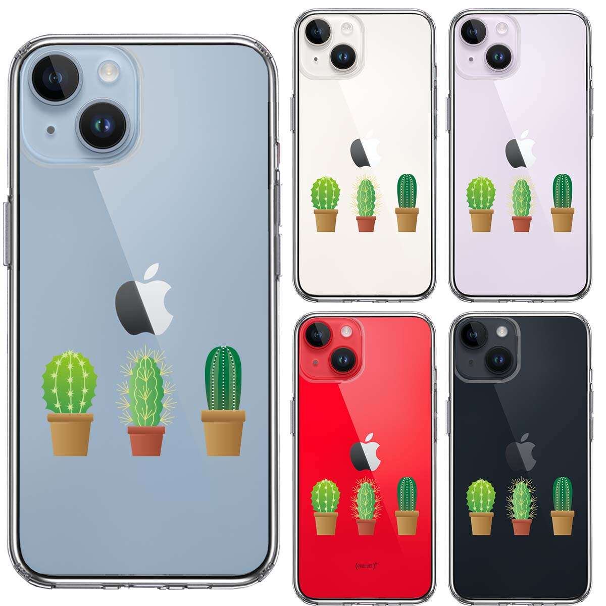 iPhone 14 Plus 側面ソフト 背面ハード ハイブリッド クリア ケース サボテン 多肉植物