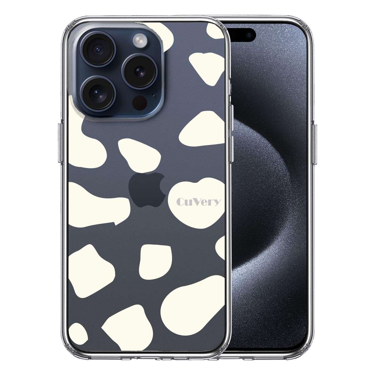 iPhone15 Pro 側面ソフト 背面ハード ハイブリッド クリア ケース アニマル柄 カウ 牛 ホワイト