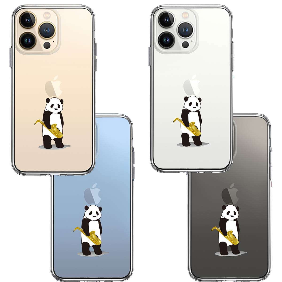iPhone13 Pro 側面ソフト 背面ハード ハイブリッド クリア ケース サックス パンダ