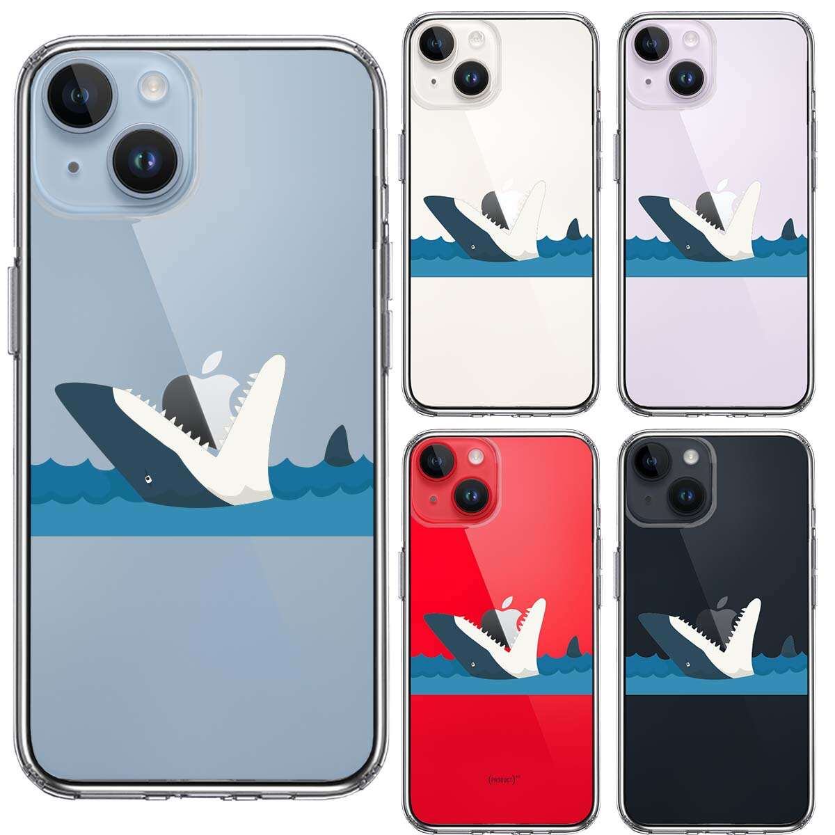 iPhone 14 Plus 側面ソフト 背面ハード ハイブリッド クリア ケース 鮫 サメ りんご パックン