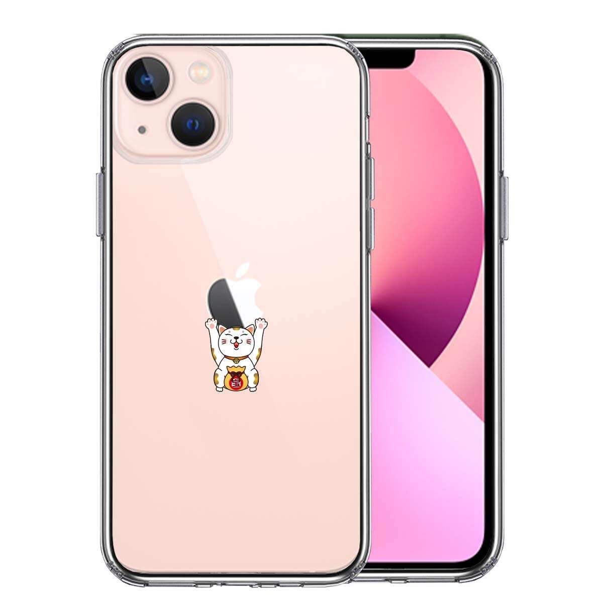 iPhone13 側面ソフト 背面ハード ハイブリッド クリア ケース りんご バンザイ 招き猫