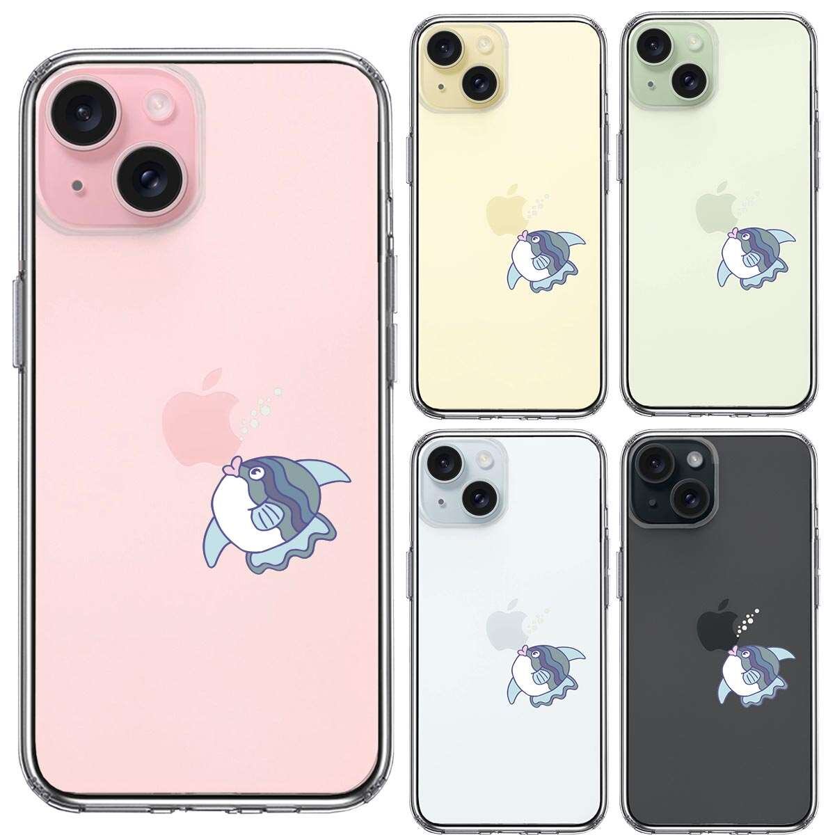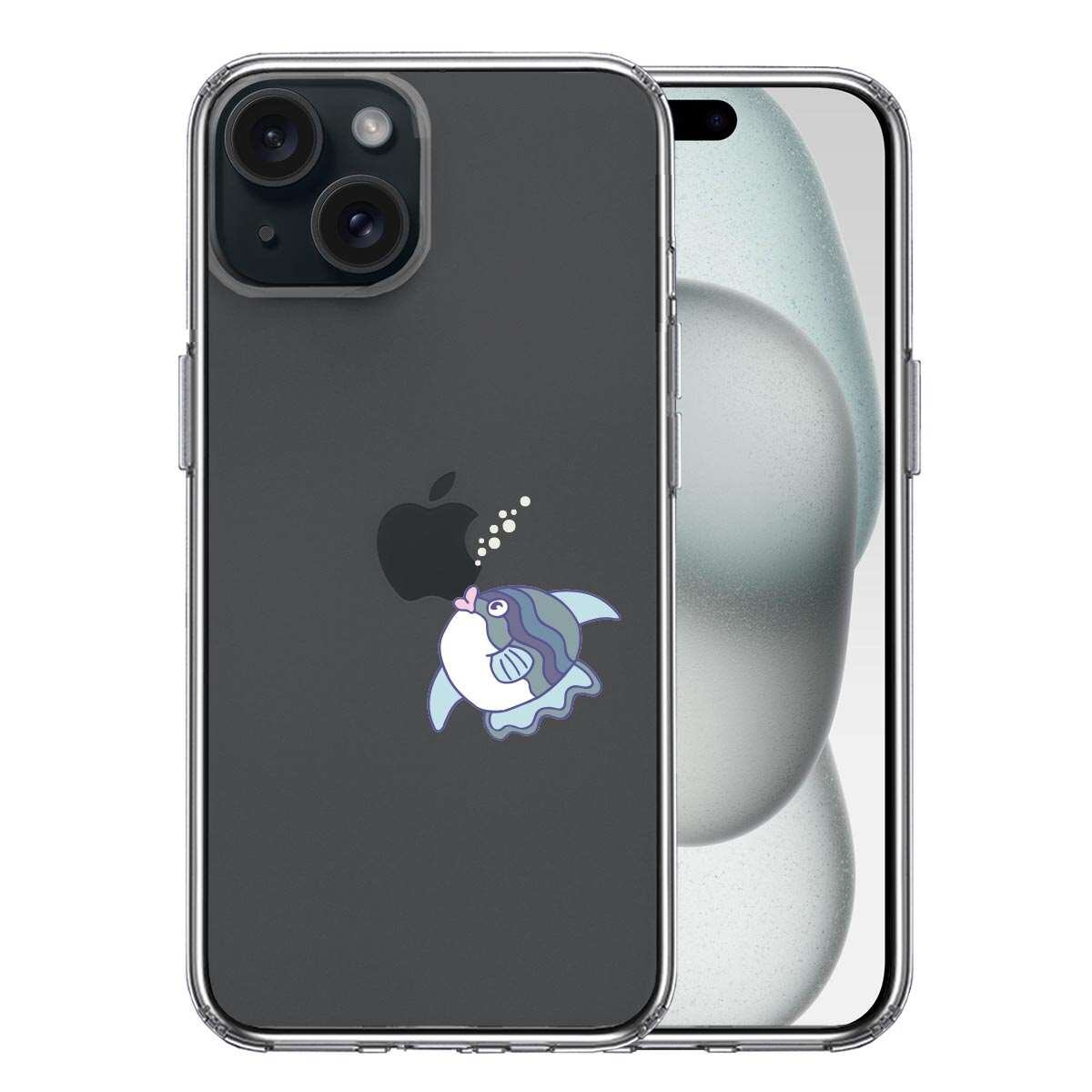 iPhone15 側面ソフト 背面ハード ハイブリッド クリア ケース マンボウ りんごに チュッ
