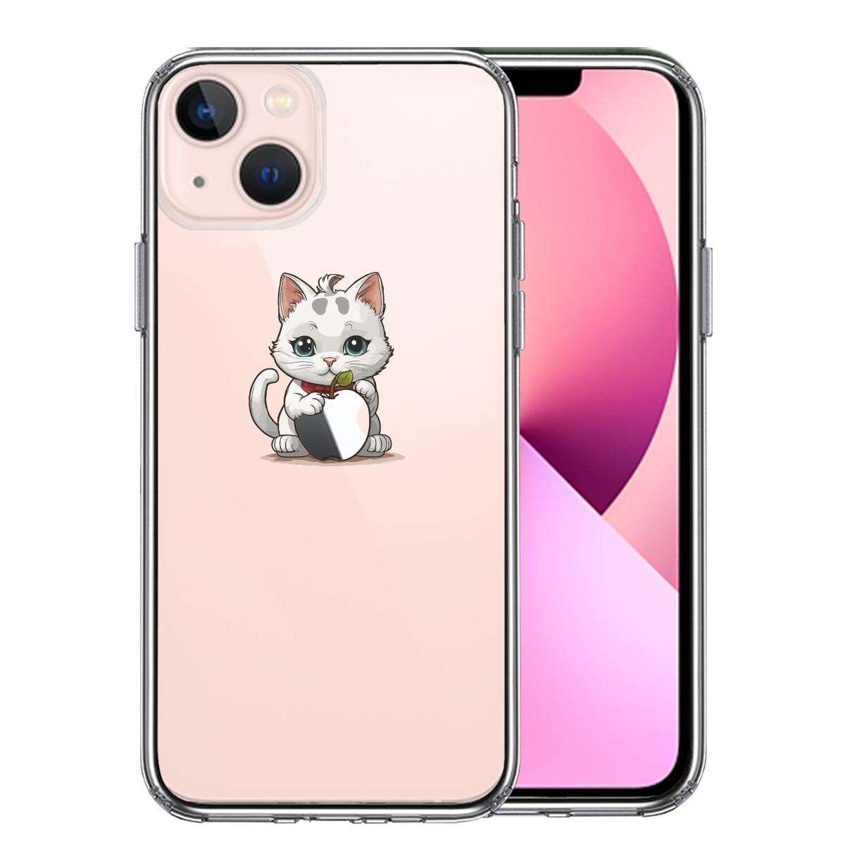 iPhone13 側面ソフト 背面ハード ハイブリッド クリア ケース にゃんこ りんご なでなで