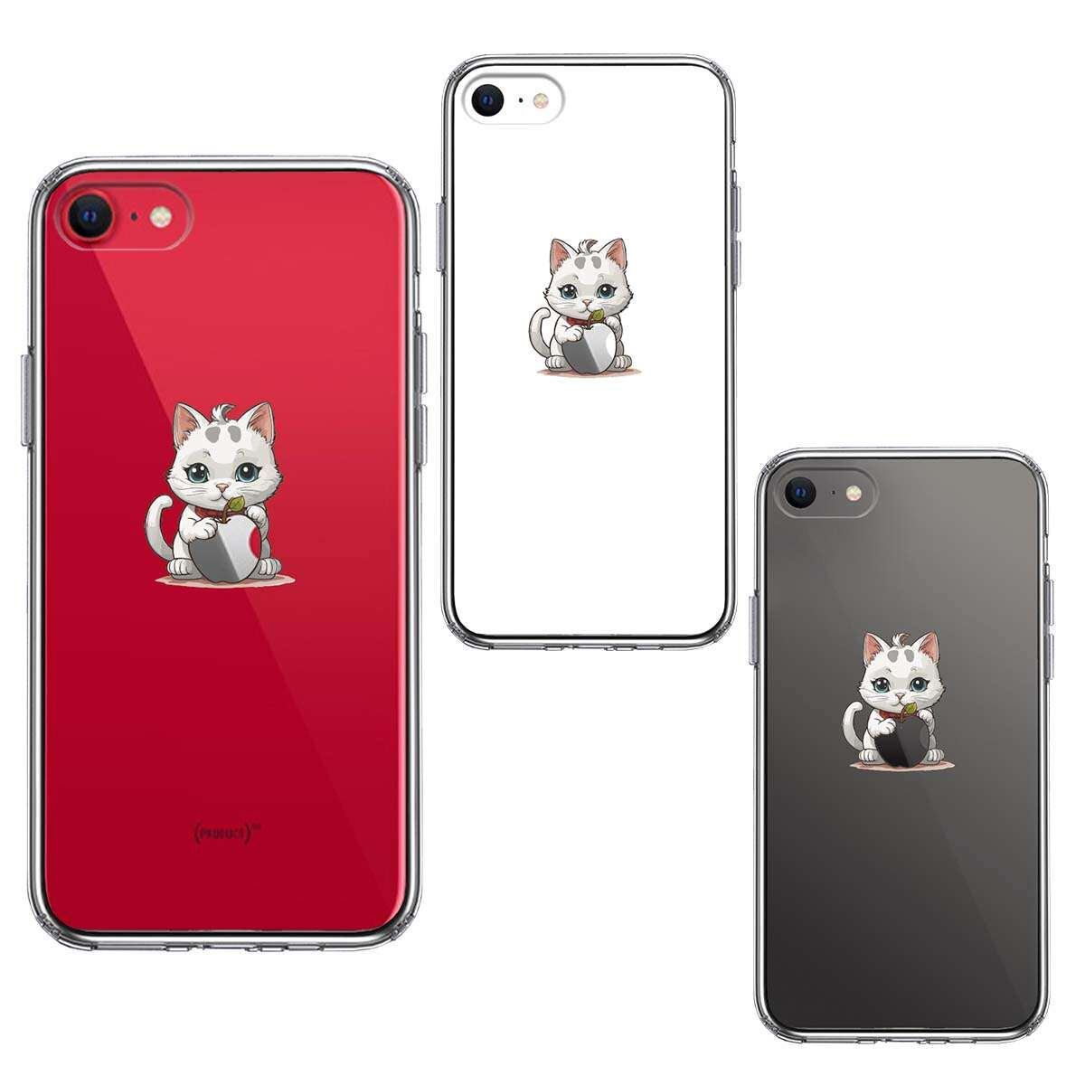 iPhoneSE(第3 第2世代) 側面ソフト 背面ハード ハイブリッド クリア ケース にゃんこ りんご なでなで