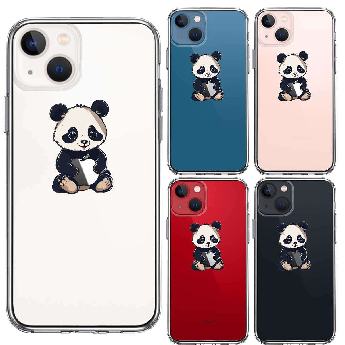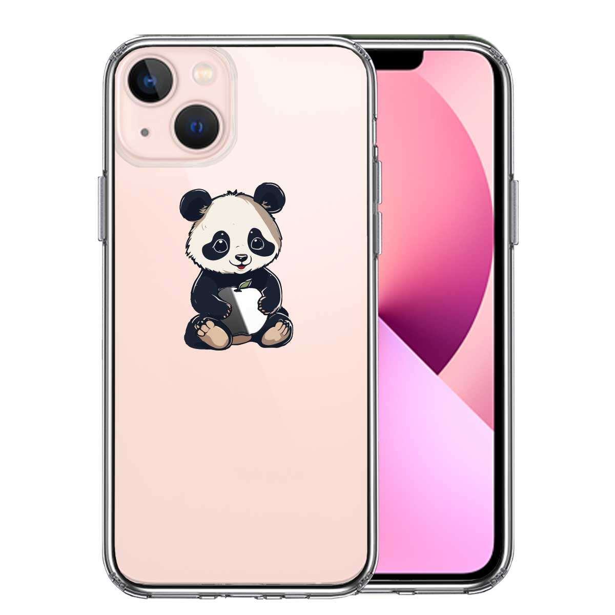 iPhone13mini 側面ソフト 背面ハード ハイブリッド クリア ケース パンダ りんご なでなで