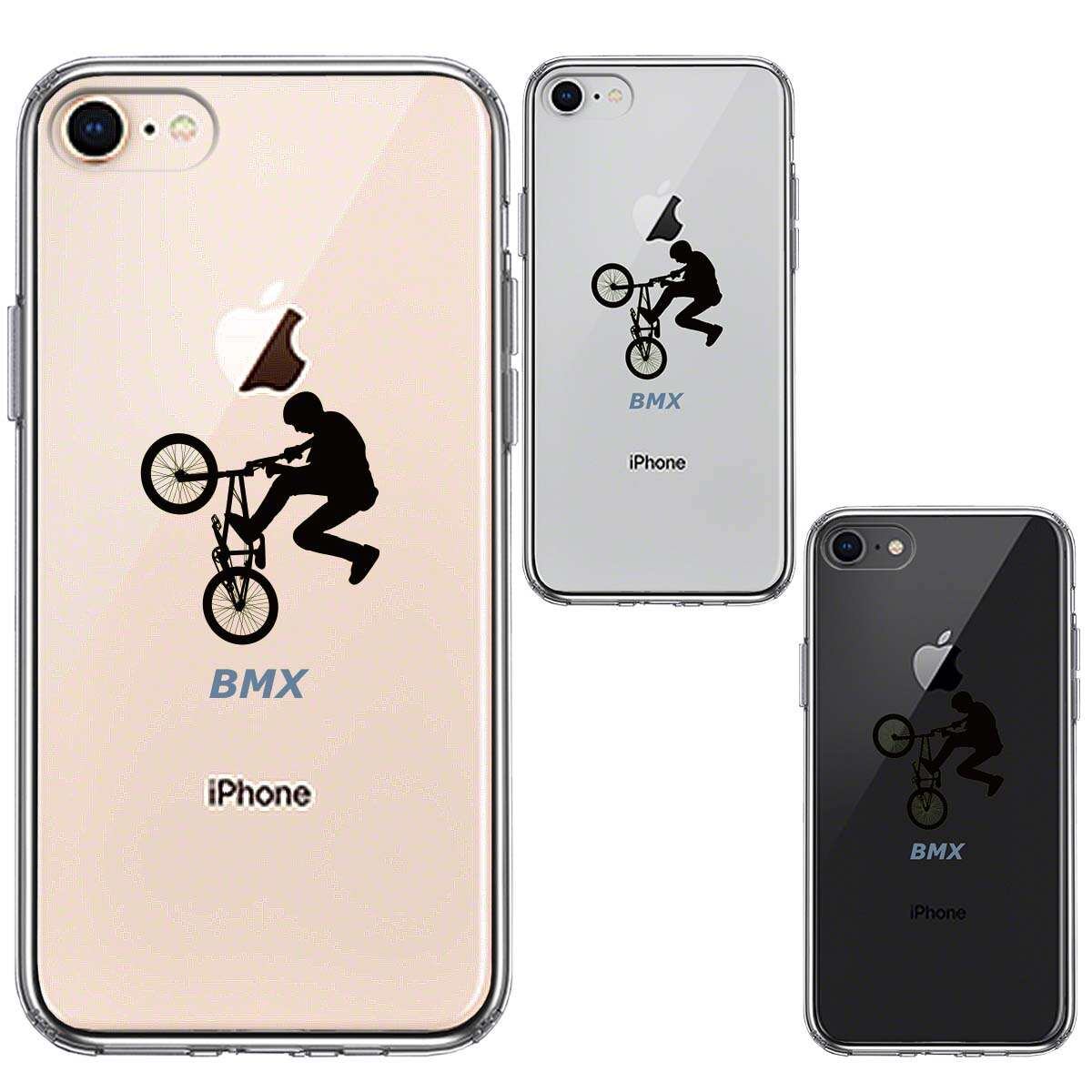iPhone8 側面ソフト 背面ハード ハイブリッド クリア ケース BMX バイシクルモトクロス