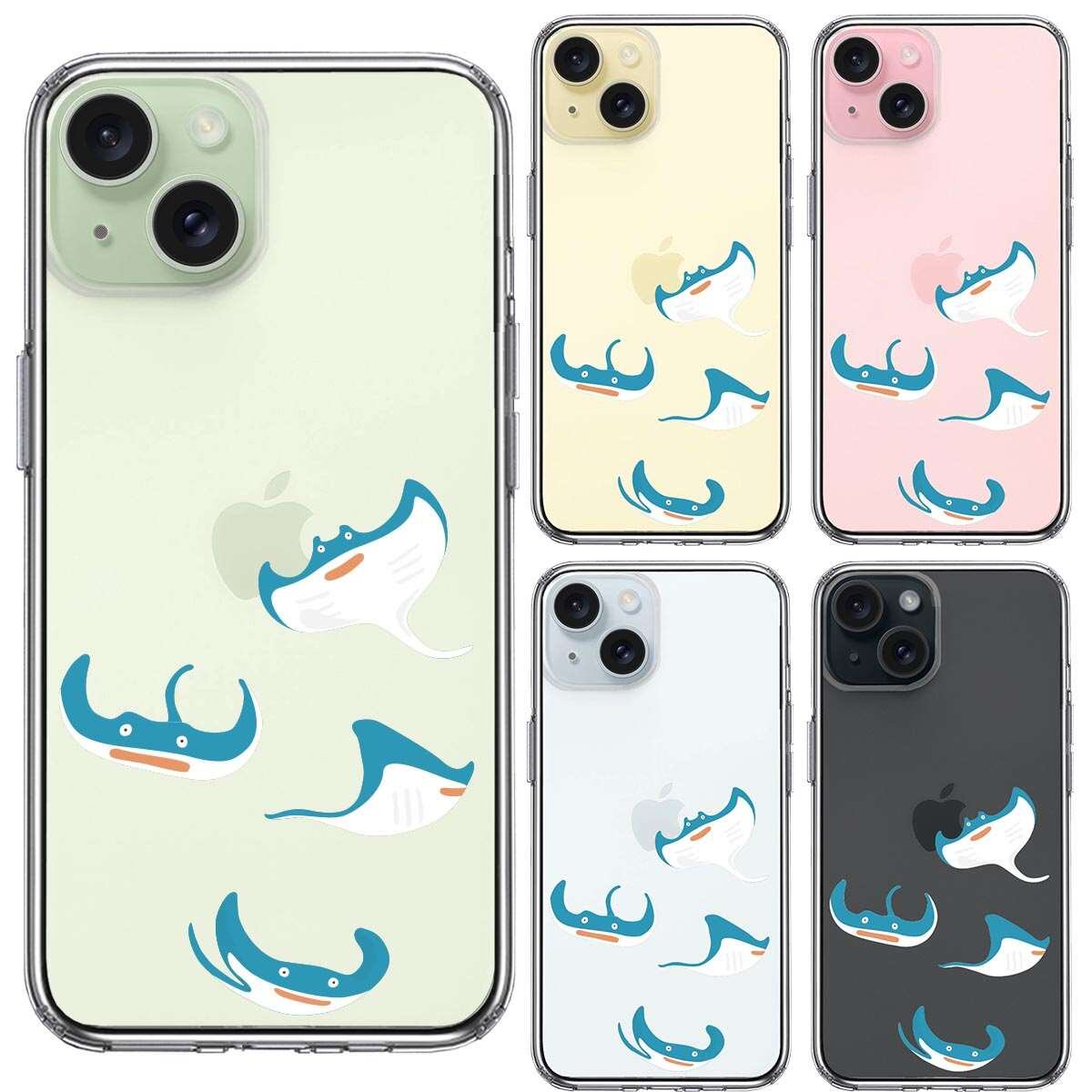 iPhone 15 Plus 側面ソフト 背面ハード ハイブリッド クリア ケース マンタ 集合