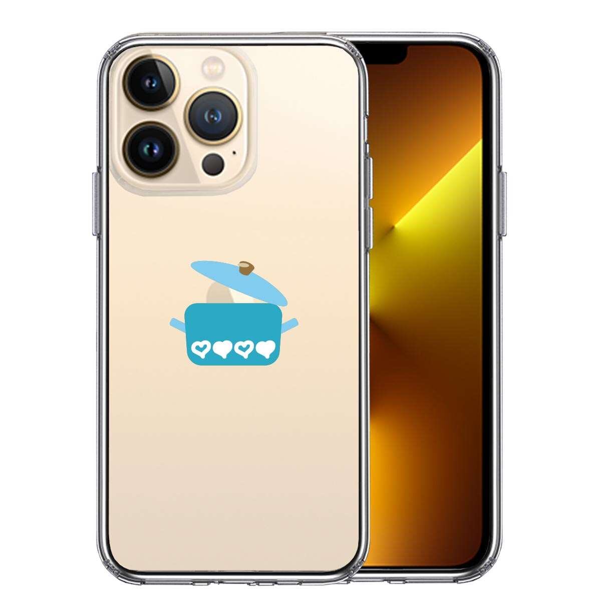 iPhone13 Pro 側面ソフト 背面ハード ハイブリッド クリア ケース 両手 鍋 りんご煮込み