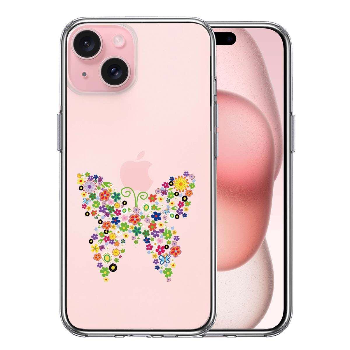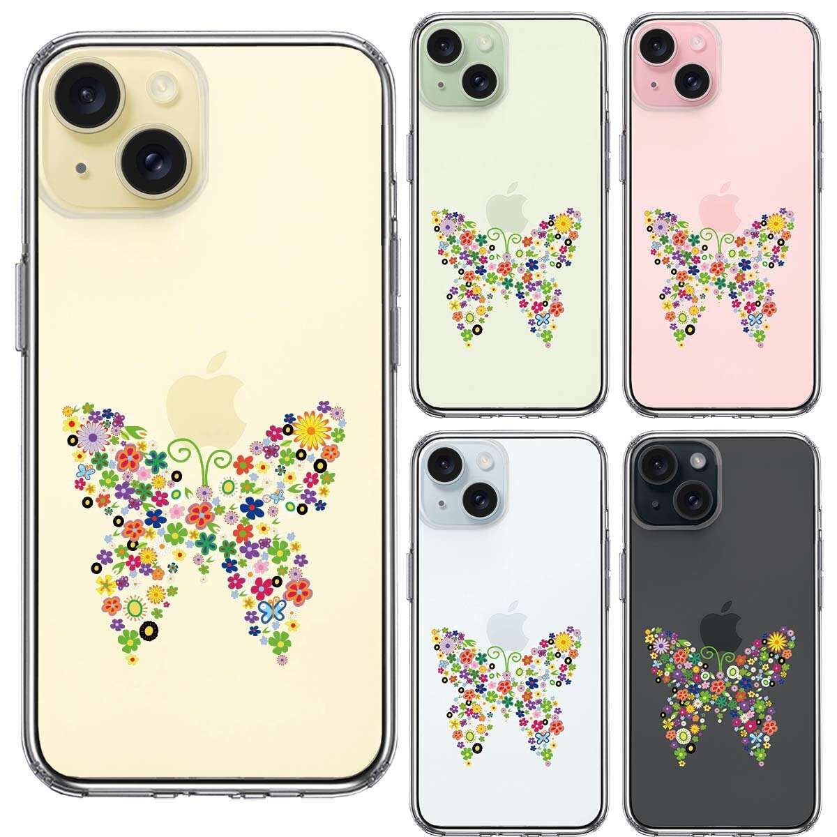 iPhone15 側面ソフト 背面ハード ハイブリッド クリア ケース カラフル 蝶々