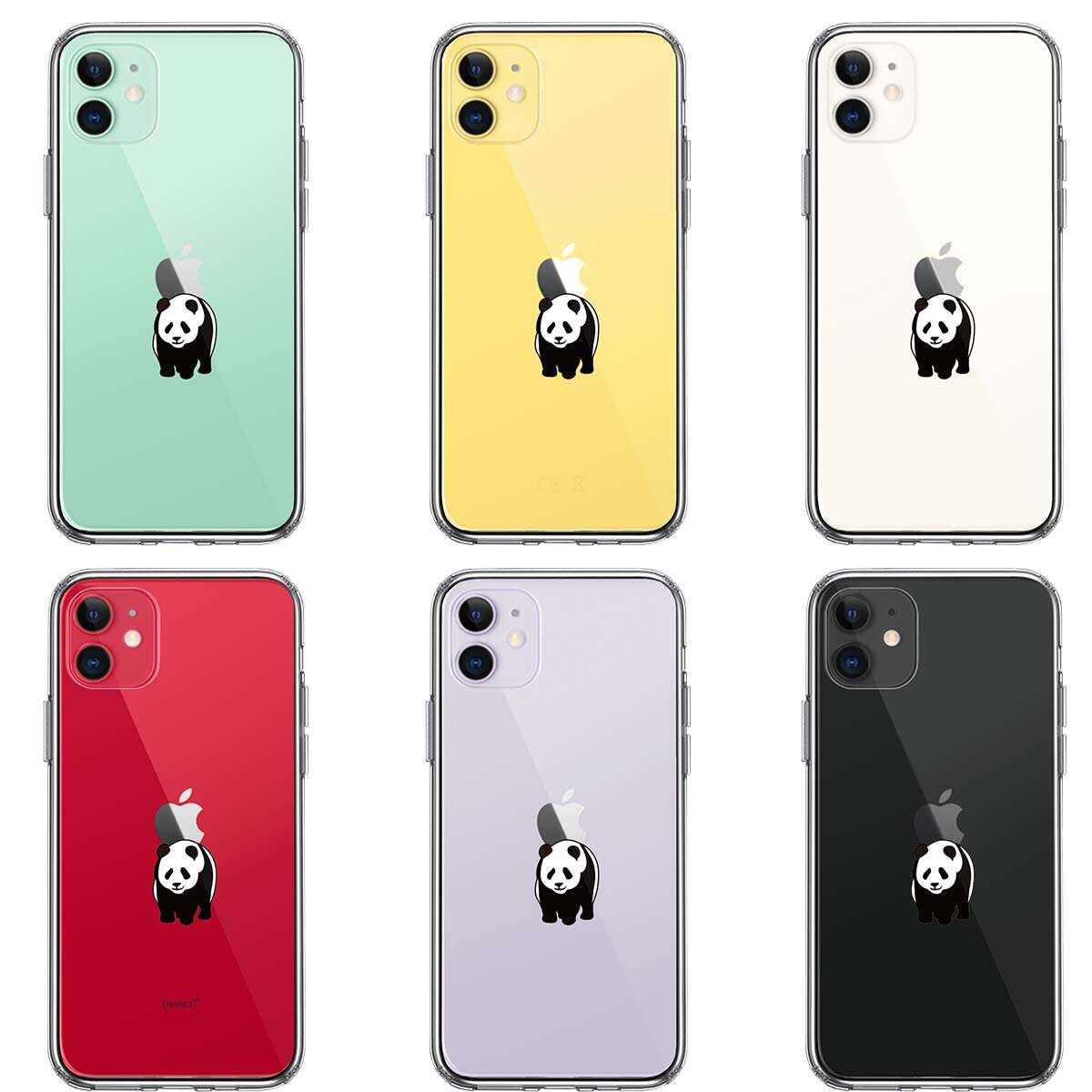 iPhone11 側面ソフト 背面ハード ハイブリッド クリア ケース パンダ りんご おんぶ